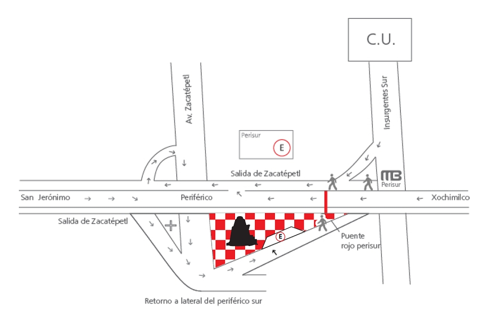 Llegada por la estación de Metrobús Perisur - Estacionamiento propio limitado y Hotel Radisson $ 30.00 todo el día